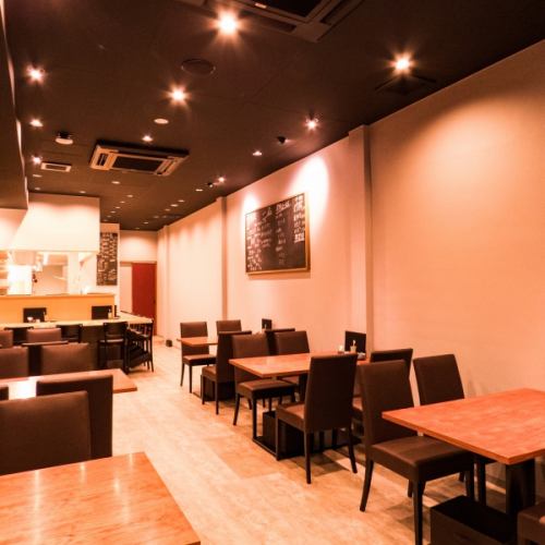 【テーブル席4名様席×6卓】お店全体の雰囲気は、シンプルでありながら明るさと温かみを合わせ持つ店内、どなた様からも愛される空間です。ご友人同士のお集まりから会社宴会まで、様々なシーンに◎貸切宴会も承ります。