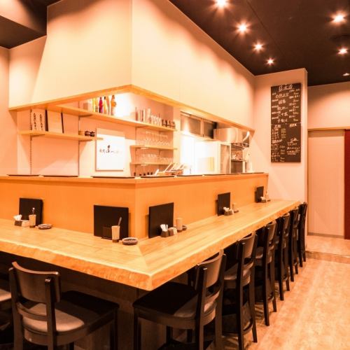 カウンター席は9席ご用意しております。お仕事帰りのサク飲みや、大人のデートにもおすすめです。スタッフとの会話も楽しみながら、素敵な時間をお過ごしください。